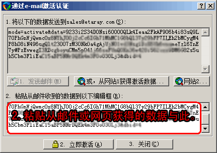1. 将以上数据拷贝到剪贴板,并粘贴到以下软件中的“通过e-mail激活认证”对话框: