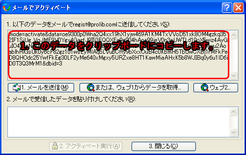 2.「データの貼り付け」ボタンをクリックしてアクティベートデータを以下の欄に貼り付けてください。
